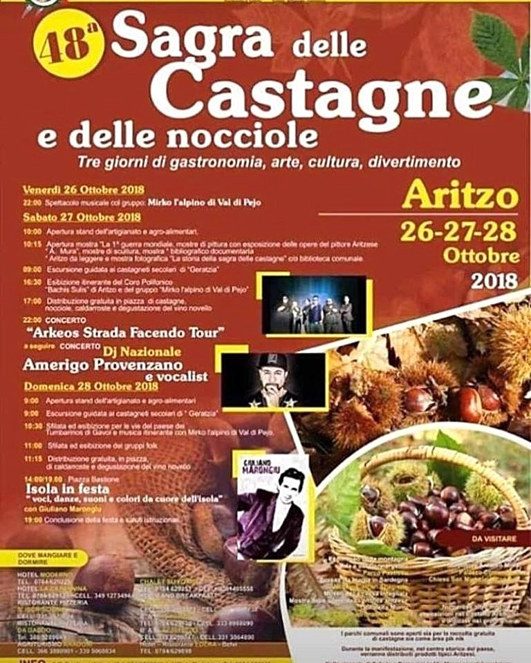 Sta per partire la più grande sagra paesana della Sardegna e il Salumificio Cocco non poteva mancare. Tanti gli appuntamenti nel programma con musica dal vivo e folklore, la distribuzione delle caldarroste nella piazza principale e ci sentiamo di consigliarvi l'esperienza dell'escursione nei castagneti: Your Sardinia Experience ci guida all'interno del bosco, raccontando la tradizione castanicola e non solo. Noi vi aspettiamo nel nostro stand, lungo la strada principale. Non vediamo l'ora di farvi assaggiare i nostri prodotti e farvene innamorare.