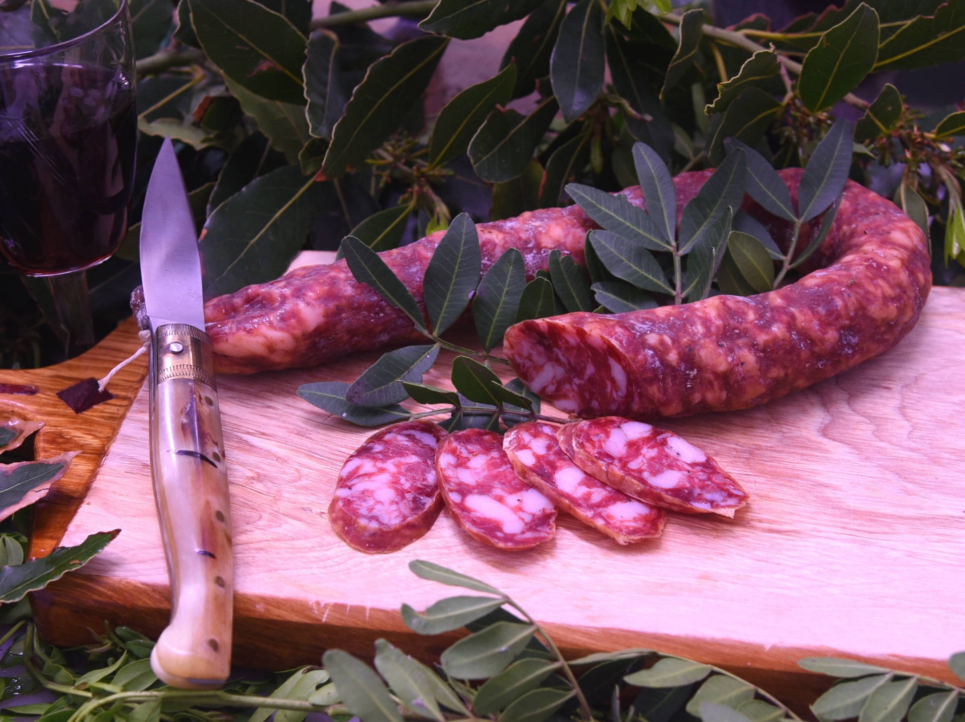 - Insaccato di carne di suino nazionale, stagionato alla maniera sarda per 12/15 giorni, condito con sale, pepe e conservante E252 per garantirne la salubrità. Viene utilizzato solamente budello animale.
